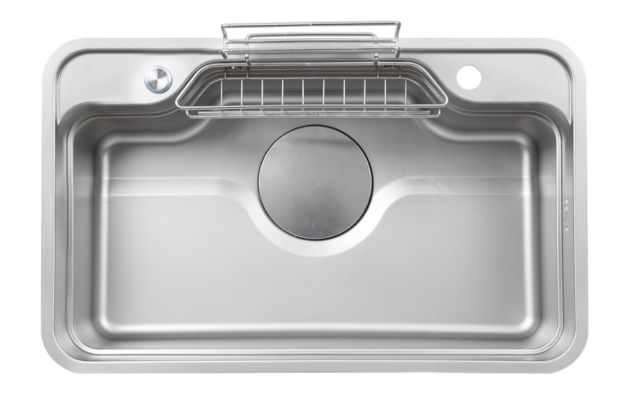Ép khuôn liền khối: Công nghệ ép khuôn liền khối tạo ra sản phẩm chậu rửa bát từ một mảnh vật liệu POSCO 304 duy nhất, không có mối hàn hay kết nối, tạo ra cấu trúc vững chắc, đảm bảo sự an toàn và tin cậy trong suốt quá trình sử dụng.