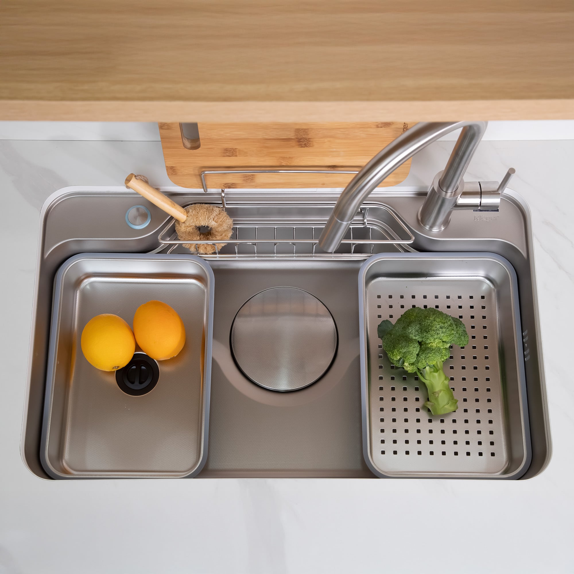 Giỏ đựng đồ đa năng: Giỏ đựng đồ inox 304 thiết kế phù hợp với kích thước và hình dạng của chậu, là một giải pháp thông minh để tận dụng không gian trong chậu, giữ cho đồ dùng được sắp xếp gọn gàng và tiện lợi.