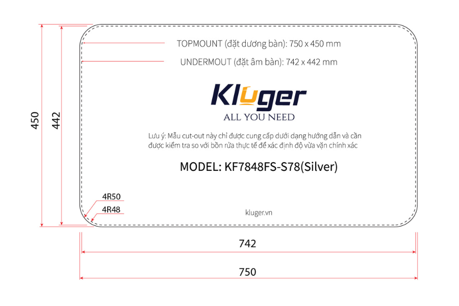 03 cách lắp đặt chậu rửa bát Kluger KF7848FS – S78.