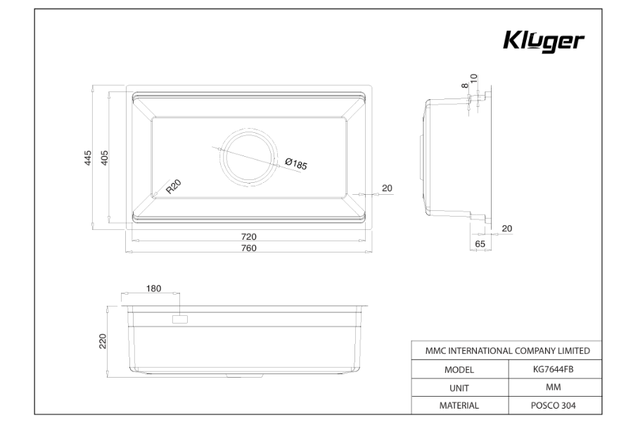 Chậu rửa bát Kluger được chế tác từ inox POSCO 304 – dòng thép không gỉ cao cấp do Tập đoàn POSCO (Hàn Quốc) sản xuất, nổi tiếng toàn cầu về chất lượng và độ bền. Với khả năng chống ăn mòn vượt trội, độ cứng cao và độ dày chuẩn 1.0+ mm, sản phẩm luôn giữ được vẻ sáng đẹp và chắc chắn trong suốt thời gian dài sử dụng.