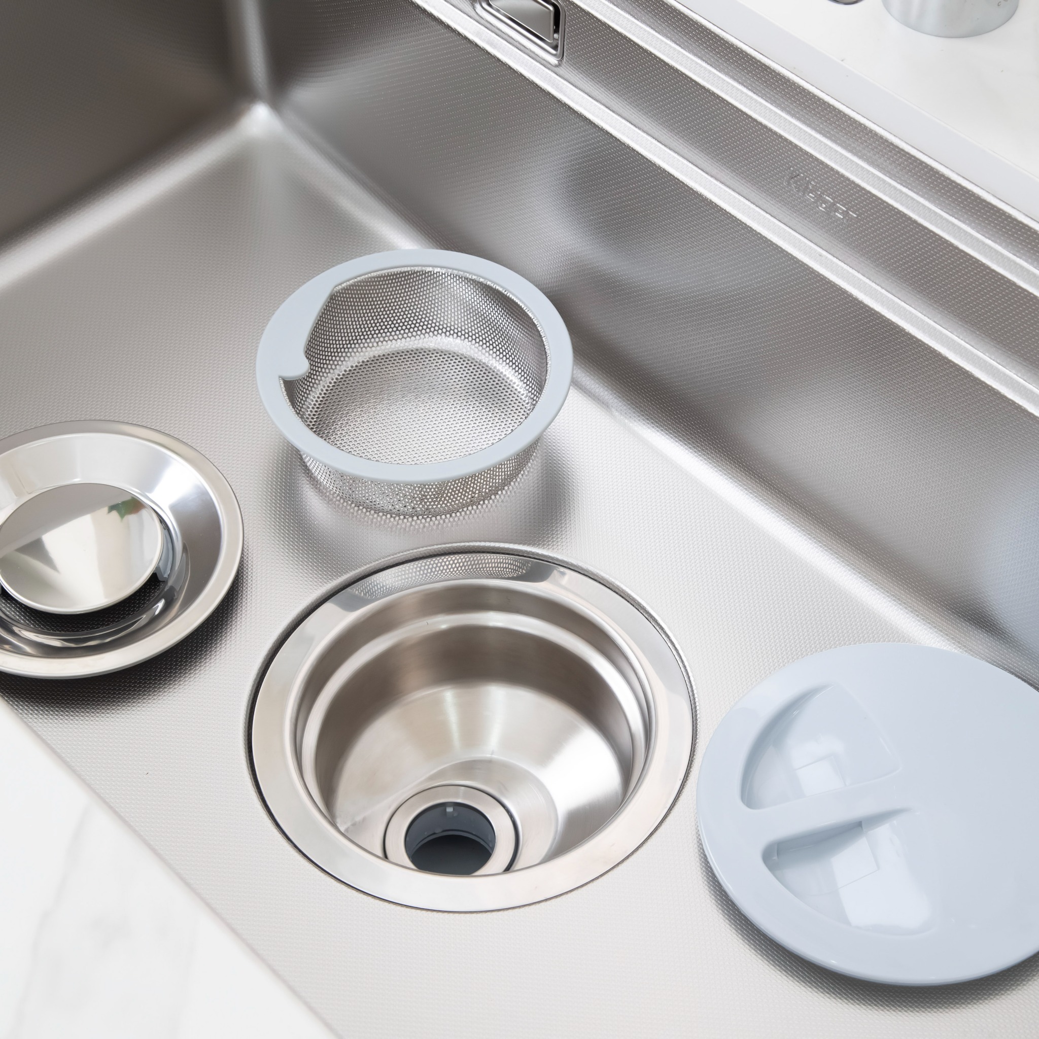 Thiết kế 03 lớp lọc tối ưu kết hợp với đường kính rộng 185mm, giúp thoát nước nhanh và lọc rác hiệu quả. Nhờ khả năng ngăn ngừa tắc nghẽn vượt trội, hệ thống thoát nước luôn vận hành trơn tru, giữ cho chậu bếp khô thoáng, sạch sẽ và an toàn vệ sinh trong suốt quá trình sử dụng.