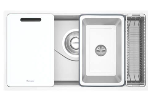 Tích hợp phụ kiện thông minh: Sản phẩm đi kèm bộ phụ kiện đa năng gồm thớt nhựa, rổ phụ, giá úp bát và siphon, mang lại sự tiện lợi tối đa trong quá trình sử dụng và chuẩn bị bữa ăn.
