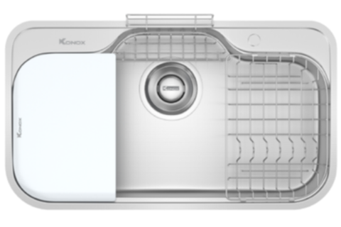 | Phụ kiện đi kèm | Thớt nhựa, rổ phụ, giá úp bát inox, Siphon tiết kiệm không gian |