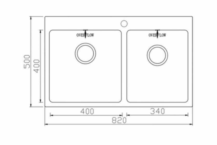 Chậu được thiết kế hai hố với kích thước lớn và nhỏ: (400mm x 400mm và 340mm x 400mm), tối ưu không gian cho việc ngâm rửa thực phẩm và dụng cụ nấu ăn. Lòng chậu sâu giúp hạn chế nước bắn ra ngoài, giữ cho khu vực bếp luôn khô ráo.