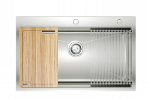 Thiết kế Workstation: Chậu rửa bát Konox KN8050TS thuộc dòng chậu Workstation, được thiết kế thông minh với gờ hạ bậc và tích hợp phụ kiện, mang đến trải nghiệm tuyệt vời trong thao tác làm bếp.