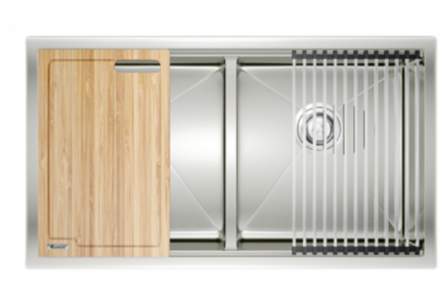 Tận dụng hai hố chậu cho các mục đích riêng biệt như rửa thực phẩm và rửa chén đĩa.