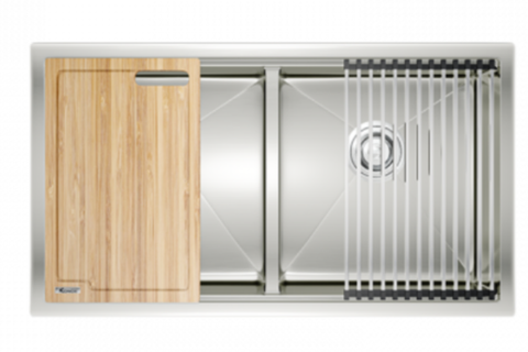 Chậu rửa bát Konox Workstation Sink KN8745DUB là sự lựa chọn lý tưởng cho những không gian bếp đẳng cấp, nơi thiết kế và công năng phải đạt đến sự hoàn hảo. Thuộc dòng Workstation Sink Series, sản phẩm này biến khu vực rửa chén đơn thuần thành một "trạm làm việc" đa năng và hiệu quả. Với phong cách lắp âm tinh tế, thiết kế hạ bậc thông minh và các phụ kiện tích hợp, KN8745DUB không chỉ tối ưu hóa không gian mà còn mang đến trải nghiệm nấu nướng tiện nghi, khoa học và đầy cảm hứng.
