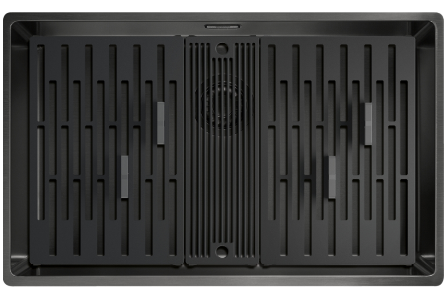 Phụ kiện đi kèm đồng bộ: Sản phẩm bao gồm lưới đáy phối hợp màu sắc và bộ xả bán tích hợp với khả năng chống tràn (semi-integrated waste with matching overflow), tất cả đều được thiết kế đồng bộ về màu sắc và chất liệu với chậu, tạo nên một tổng thể hài hòa và sang trọng. Bạn cũng có thể mua thêm các phụ kiện tùy chọn khác như rổ ráo nước màu hoặc thớt chuyên dụng để tối ưu hóa công năng.