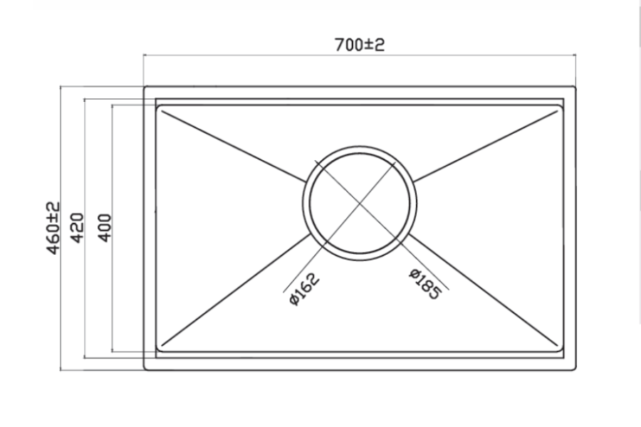 - Kích thước sản phẩm: 700R x 460S x 220C mm (R – chiều ngang, S – chiều sâu, C – chiều cao/lòng chậu)