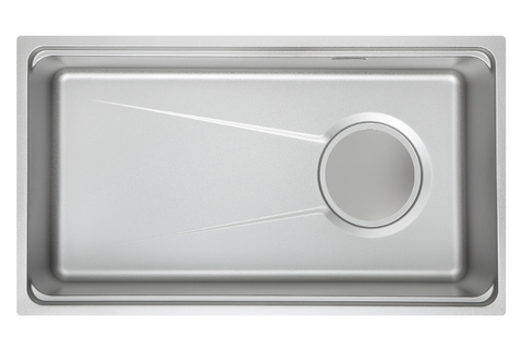 Kiểu dáng chậu 1 hố lệch, tạo thêm không gian lắp đặt các vật dụng khác trong khoang tủ.