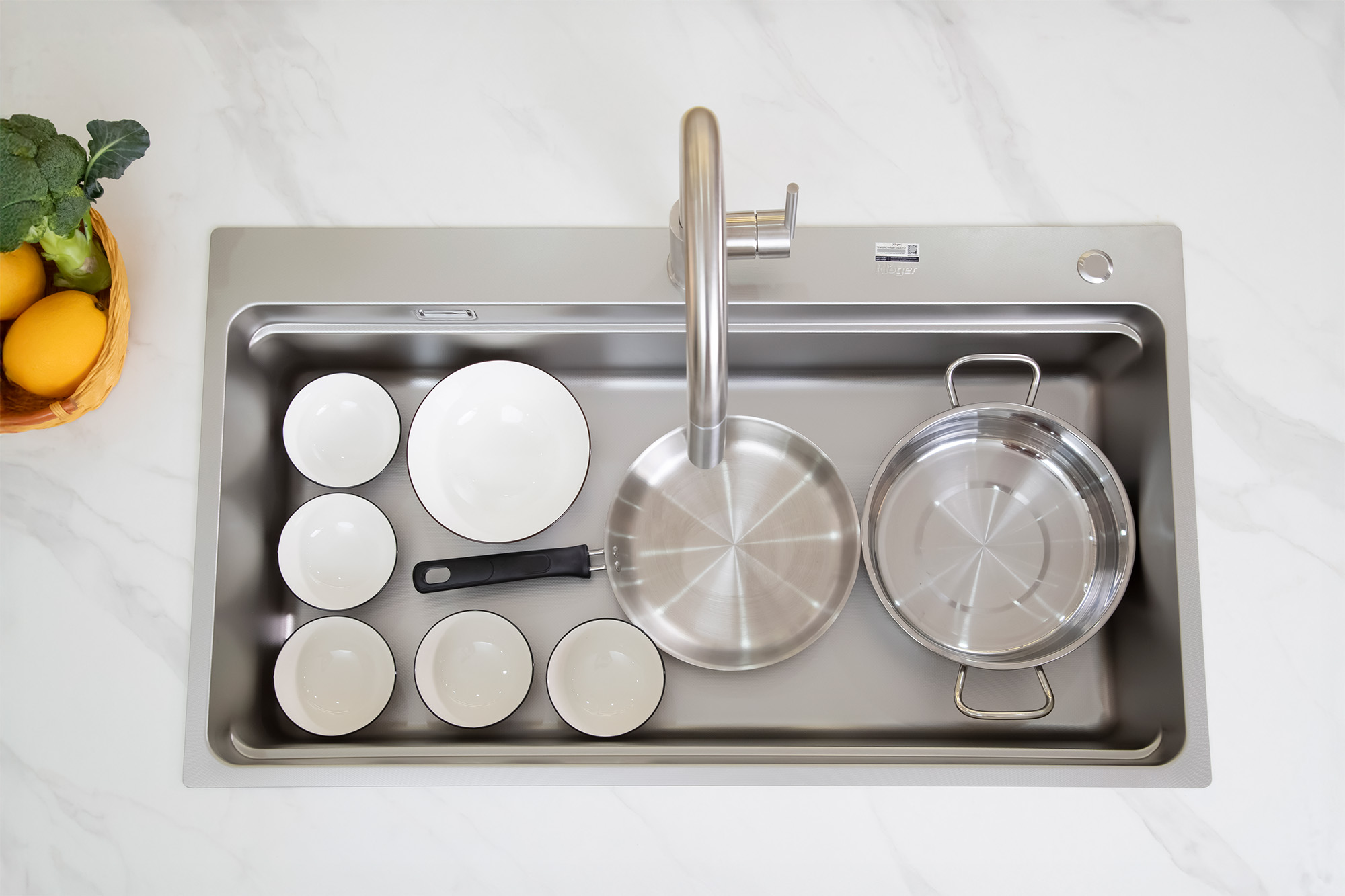 Hố rửa chính: Cung cấp không gian cực kỳ thoải mái để rửa các loại nồi chảo kích thước lớn, mâm dĩa tiệc hoặc sơ chế lượng lớn thực phẩm mà không cảm thấy chật chội.