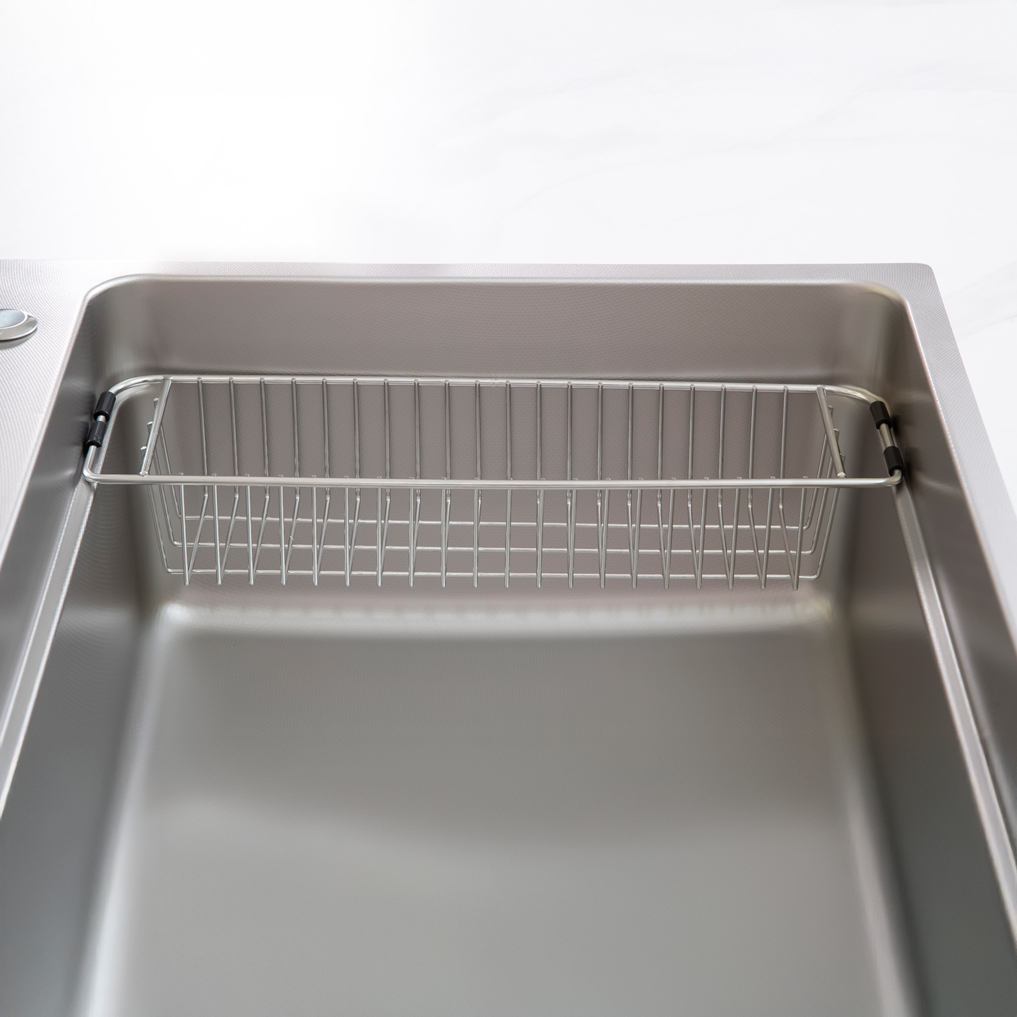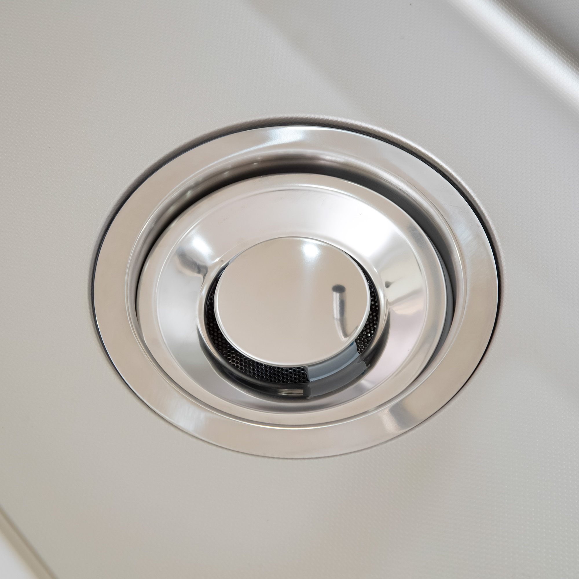 Rổ lọc rác thông minh: Đi kèm là rổ lọc rác bằng Inox với nhiều lỗ nhỏ, giúp giữ lại các mảnh vụn thức ăn, ngăn ngừa tắc nghẽn đường ống. Rổ có quai cầm tiện lợi, dễ dàng nhấc ra để vệ sinh.