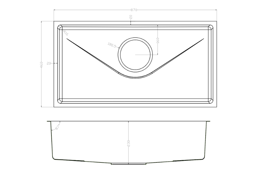 Vệ sinh lòng chậu dễ dàng với góc lượn R16 mm.