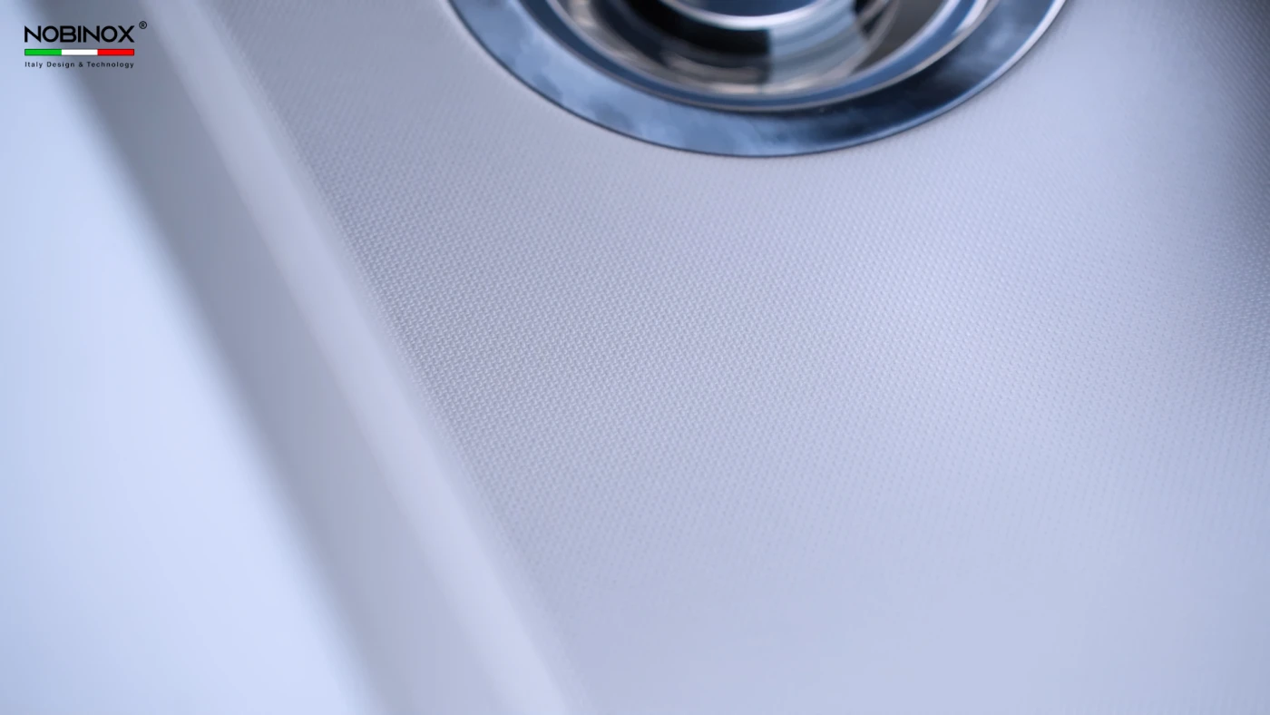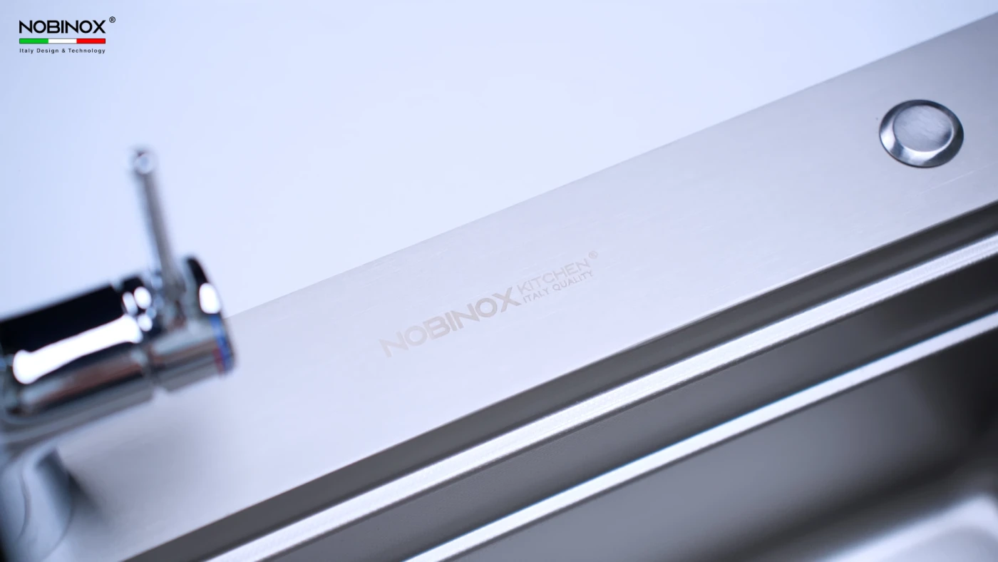 Bề mặt chậu được hoàn thiện bằng Hạt Linen dập nổi giúp chống vân tay, chống xước tối ưu cùng với đó với thiết kế gờ hạ bậc thông minh giúp tích hợp phụ kiện đi kèm, mang đến sự tiện lợi tối đa cho người dùng, tiết kiệm thời gian và không gian bếp.