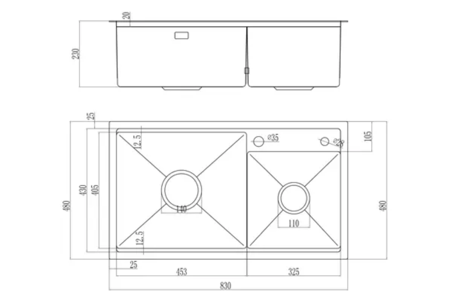 - Bát rác to kích thước 140mm, bát rác nhỏ kích thước 110mm giúp thoát nước nhanh, với cấu tạo 3 lớp lọc chống tắc, phù hợp với thói quen sử dụng của người Việt.