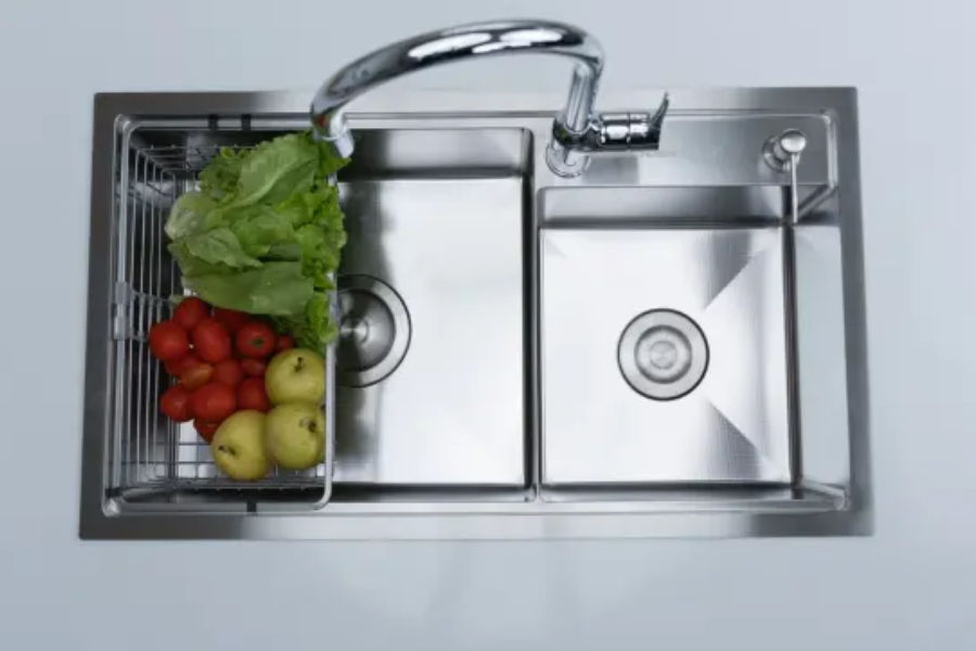- Chậu thiết kế gờ hạ bậc thông minh tích hợp phụ kiện bếp đi kèm cùng với công năng đa dạng giúp cho việc vào bếp nhẹ nhàng và đơn giản hơn.