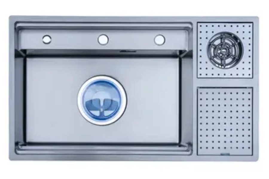 - Thiết kế chậu 1 hố tích hợp máy rửa cốc, hộc đựng rác mini, thêm tiện dụng cho sản phẩm.