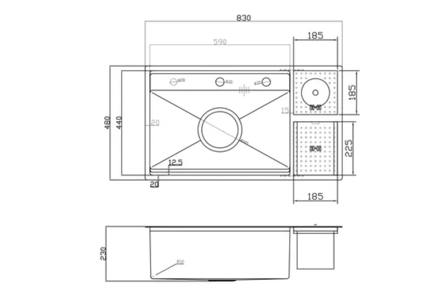 - Thiết kế góc lượn bo tròn R10 giúp dễ dàng vệ sinh.