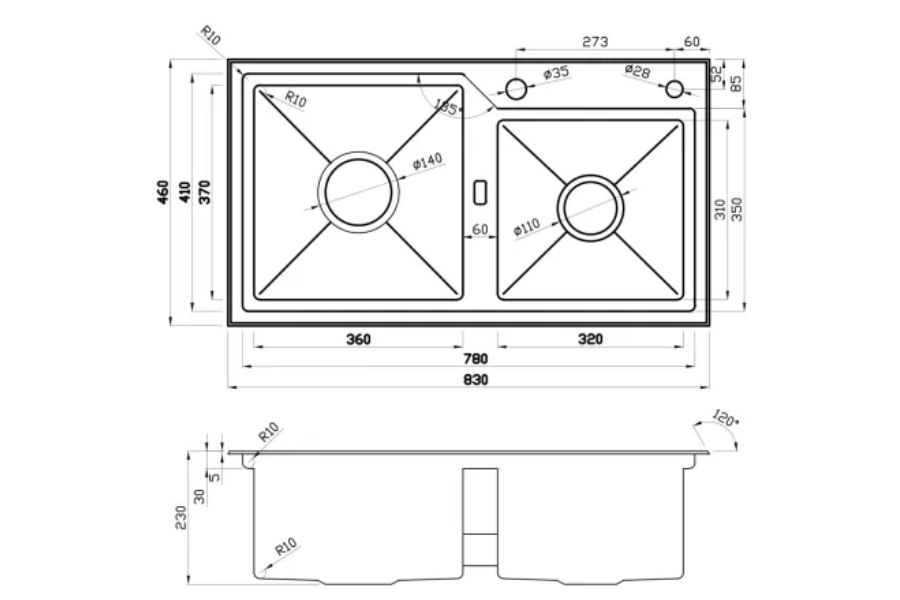- Chậu tạo nên từ thép không gỉ Inox 304 tạo độ sáng bóng vượt trội tạo cảm giác mượt mà đồng nhất trên toàn bộ bề mặt chậu bếp, chống oxi hóa, an toàn cho sức khỏe.