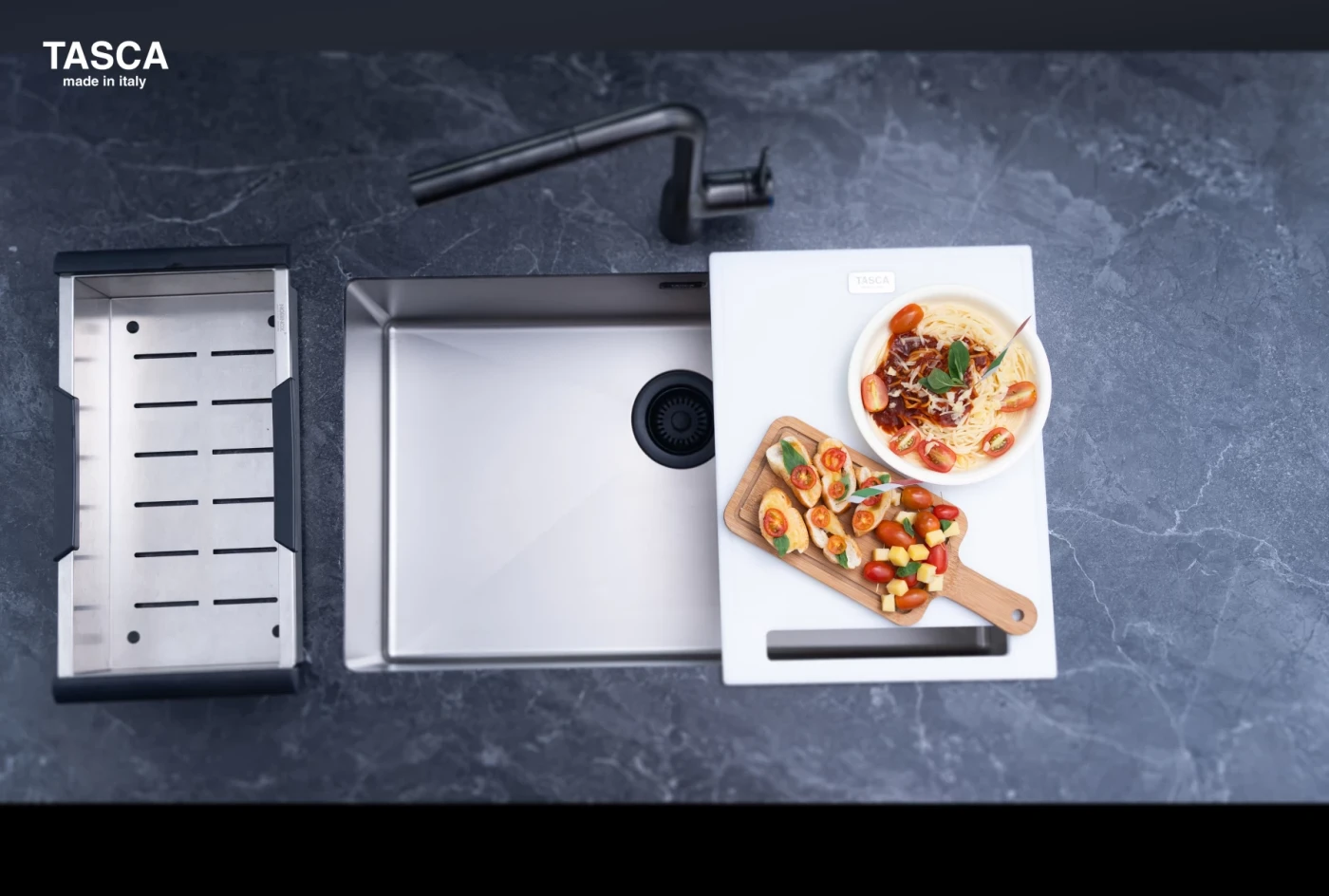 - Chậu thiết kế lắp âm hoặc bán âm - kèm theo tích hợp thêm nhiều phụ kiện bếp đi kèm cùng với công năng đa dạng giúp cho việc vào bếp nhẹ nhàng và đơn giản hơn.