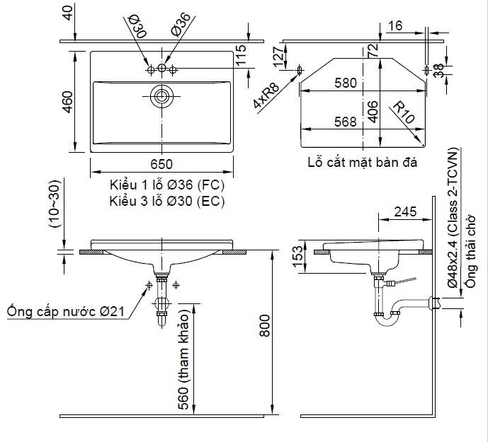 - Không bao gồm phụ kiện (vòi, bộ xả,...).
