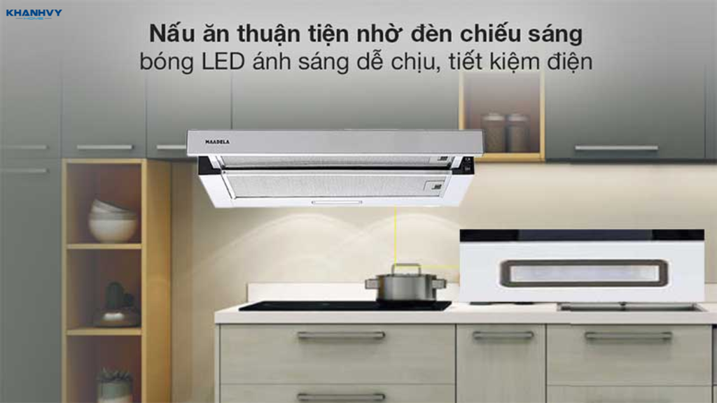 Máy hút mùi được trang bị đèn LED hỗ trợ khi nấu nướng