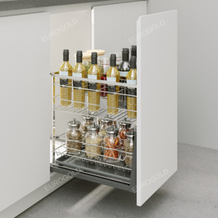 Giá gia vị inox nan dẹt, ray giảm chấn EPD4220VX có chức năng như giá đựng gia vị nhà bếp. Bạn có thể thoải mái lưu trữ chai lọ gia vị nấu nướng hằng ngày, thực phẩm khô,... Giờ đây, các chị em nội trợ không phải tốn nhiều thời gian và công sức tìm gia vị nấu ăn như trước kia mà chỉ cần kéo tủ ra để lấy loại gia vị cần dùng một cách dễ dàng và nhanh chóng. Các chai lọ gia vị, thực phẩm khô đã được sắp xếp gọn gàng và thẩm mỹ bên trong tủ bếp. Không gian nhà bếp sẽ trở nên ngăn nắp, sạch sẽ, đảm bảo an toàn hơn cho sức khỏe của chúng ta.