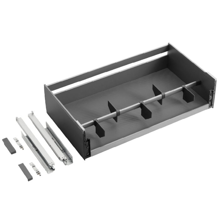Sản phẩm được trang bị hệ thống ray giảm chấn bằng thép chất lượng cao, có khả năng chịu tải trọng lên đến 45kg, đáp ứng tiêu chuẩn khắt khe SGS 8000 của Châu Âu. Các thanh trượt trợ lực giúp việc kéo đẩy ngăn kéo trở nên nhẹ nhàng, êm ái, mang lại trải nghiệm sử dụng tuyệt vời.
