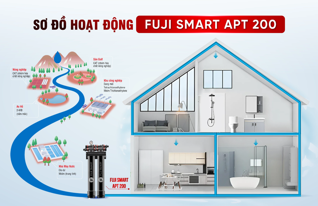 Sơ đồ hoạt động của hệ thống lọc tổng Fuji Smart APT 200 trong thực tế