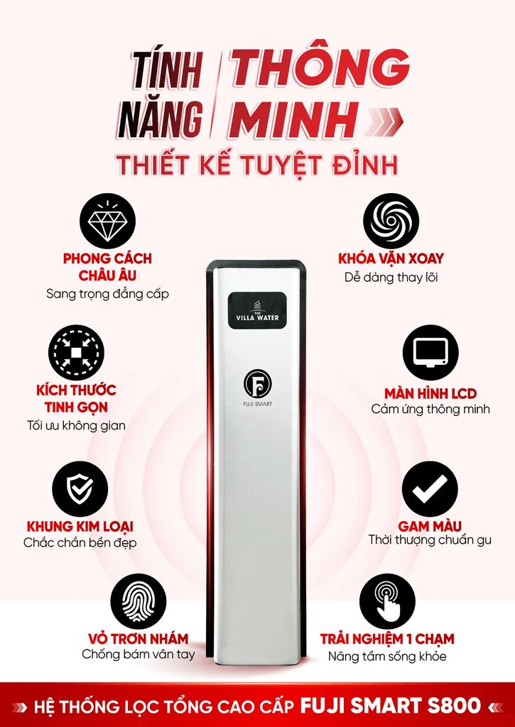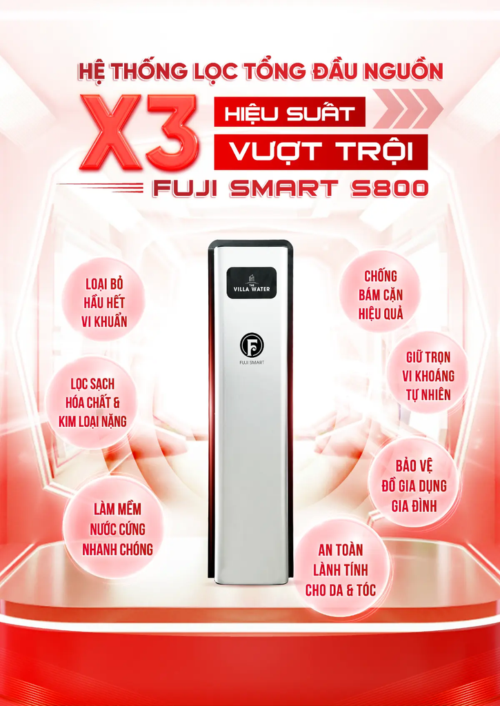 Hệ thống lọc tổng cao cấp Fuji Smart S800 được trang bị những công nghệ hiện đại từ Nhật Bản, cung cấp nguồn nước sạch và an toàn cho toàn bộ ngôi nhà biệt thự