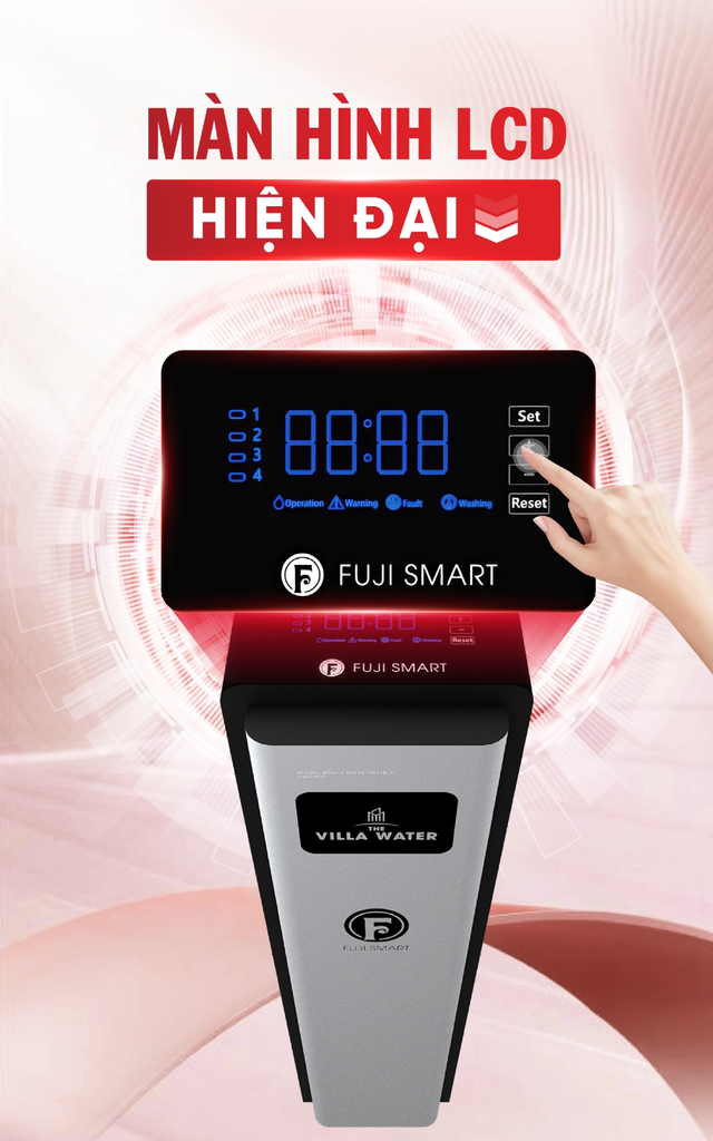 Bên cạnh đó, trải nghiệm người dùng cũng được nâng lên một tầm cao mới. Thay vì những màn hình hiển thị nhỏ, khó nhìn và các phím bấm vật lý phức tạp, hệ thống lọc tổng cao cấp Fuji Smart S800 được trang bị màn hình cảm ứng LCD sắc nét, hiển thị đầy đủ các thông số một cách trực quan, rõ ràng. Quý khách có thể dễ dàng theo dõi tình trạng hoạt động của máy chỉ với một vài thao tác đơn giản, tương tự như sử dụng một thiết bị công nghệ cao cấp.