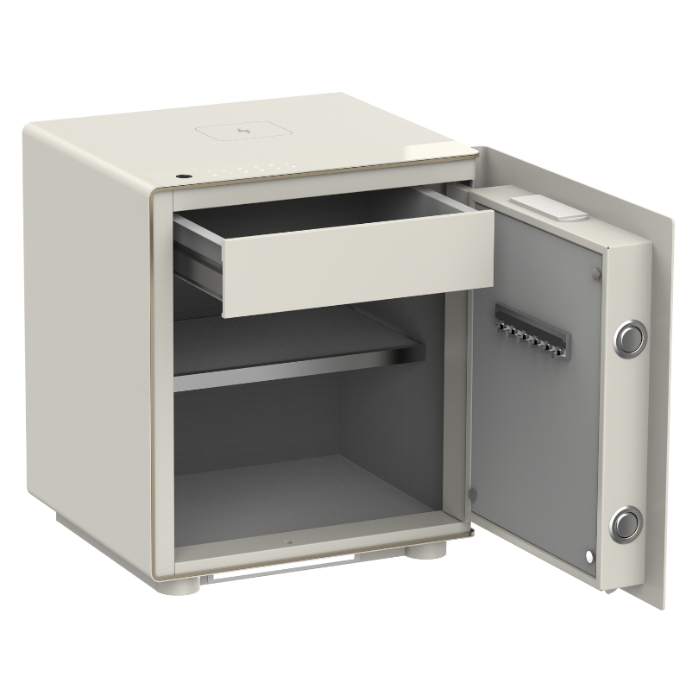 Két hỗ trợ mã số – vân tay – chìa cơ, trong đó bộ nhớ chứa tới 30 vân tay và 10 mã số, đáp ứng tốt nhu cầu của gia đình hoặc phòng ngủ khách sạn cao cấp. Đây là mức lưu trữ khá thực tế với các két phân khúc lifestyle–smart safe.