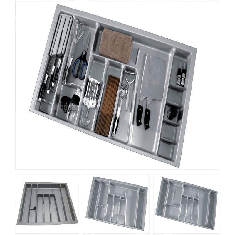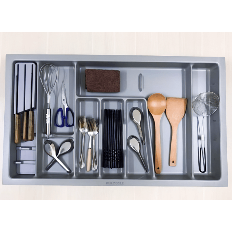 - Lưu trữ thông minh: Với thiết kế thông minh, tạo sự tiện lợi tối ưu cho người dùng, khay chia thìa nĩa dao chất liệu nhựa cao cấp ETP được chia thành nhiều ô với kích cỡ khác nhau, giúp tối ưu công năng của khay để được nhiều vật dụng đồ dùng nhà bếp như muỗng nĩa, kéo, dụng cụ đánh trứng, dụng cụ cắt gọt hoa quả,… một cách ngăn nắp. Đồng thời, khay còn có cấu tạo đặc biệt, tích hợp bộ để dao thông minh và an toàn, tránh tình trạng trẻ nhỏ nghịch phá dao kéo gây nguy hiểm. Đây là sản phẩm có khả năng lưu trữ gần như toàn bộ vật dụng nhà bếp một cách ngăn nắp và gọn gàng. Người dùng dễ dàng lấy vật dụng ra khi cần sử dụng hay để vào khi đã dùng xong một cách nhanh chóng.