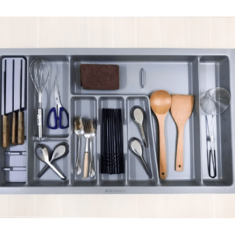 Khay chia thìa nĩa dao chất liệu nhựa cao cấp ETP có chức năng như khay đựng đồ dùng nhà bếp. Bạn có thể thoải mái lưu trữ muỗng đũa, thìa muôi, dao kéo, dụng cụ đánh trứng, dụng cụ gọt vỏ hoa quả,… Giờ đây, các chị em nội trợ không phải tốn nhiều thời gian và công sức tìm những vật dụng nhỏ (thìa, nĩa, dao,…) như trước kia mà chỉ cần mở ngăn kéo tủ để lấy đồ một cách dễ dàng. Các dụng cụ đã được đặt gọn gàng và thẩm mỹ trên khay, không gian nhà bếp sẽ trở nên ngăn nắp hơn.