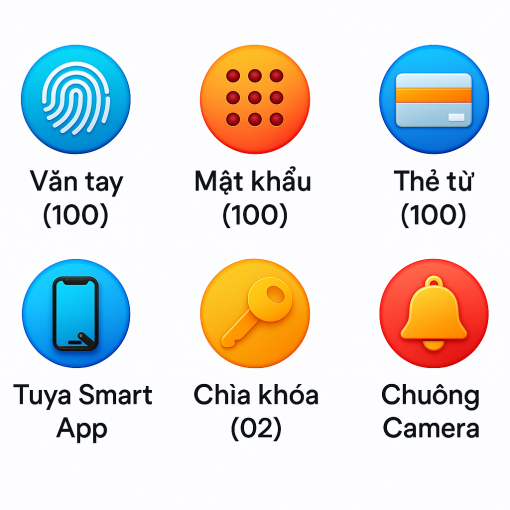 | Tính năng mở khóa | Vân tay, mật khẩu, chìa cơ, thẻ từ, App Wifi, chống nước 100%, Face ID 3D |