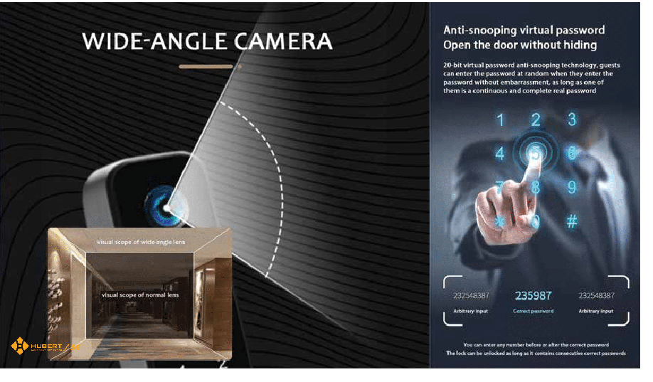 Khóa cửa vân tay Hubert HB CG80VF nhập khẩu chính hãng được trang bị công nghệ hiện đại với tính năng mở cửa bằng vân tay, mật mã, thẻ từ, chìa cơ chống sao chép, đặc biệt APP WIFI mở cửa từ xa, Face ID nhận diện khuôn mặt chất lượng cao chính hãng tại homego.