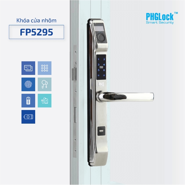 Khóa vân tay PHGlock FP5295S, sản phẩm của thương hiệu PHGLock (Úc), là giải pháp an ninh thông minh, mang đến sự tiện nghi và an toàn cho ngôi nhà của bạn. Với thiết kế hiện đại, sang trọng, khóa vân tay PHGlock FP5295S đặc biệt phù hợp với các dòng cửa có đố cửa thấp như nhôm Xingfa, EuroWindow, cửa nhựa lõi thép,...