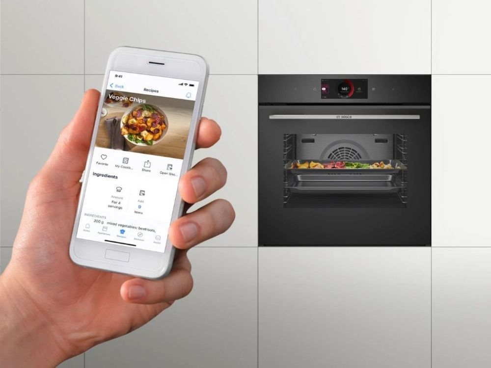 Với tính năng kết nối Home Connect, bạn có thể điều khiển lò nướng từ xa thông qua ứng dụng trên điện thoại thông minh. Ngoài ra, tính năng trợ lý giọng nói cho phép bạn dễ dàng lựa chọn món ăn và cài đặt chương trình phù hợp thông qua Amazon Alexa hoặc Google Assistant.