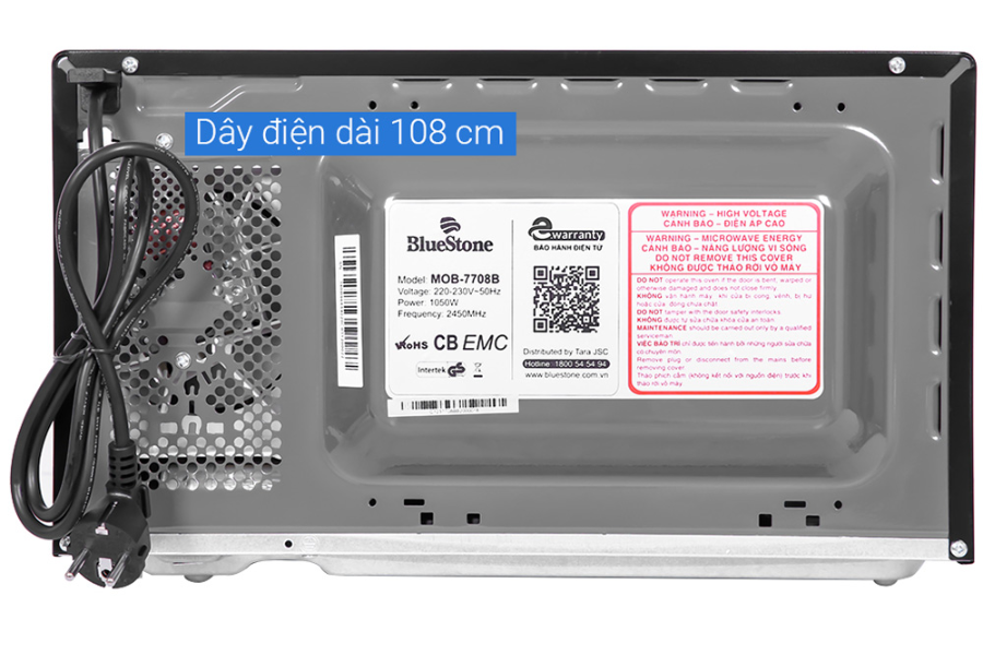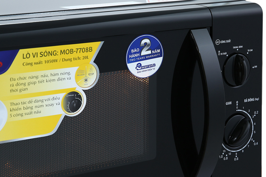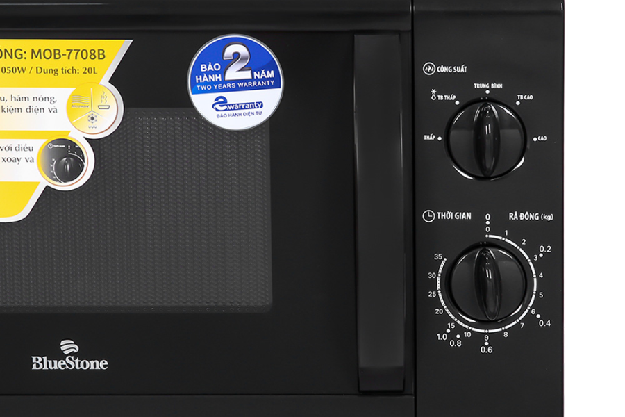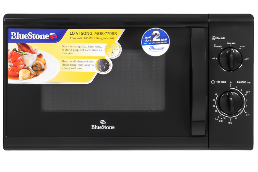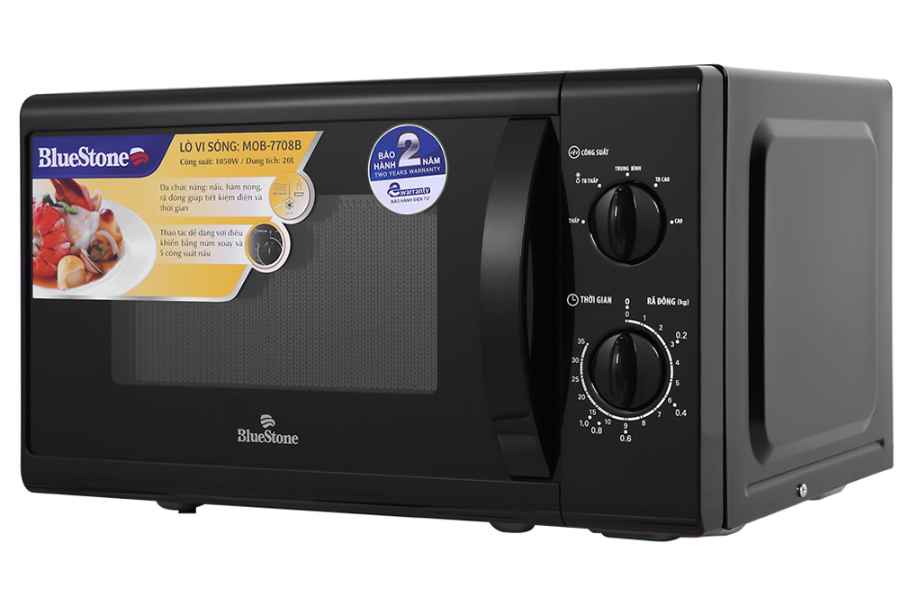 Lò vi sóng BlueStone MOB-7708B 20 lít của thương hiệu BlueStone - Singapore uy tín, công suất 1050W với 5 mức điều chỉnh làm chín thức ăn nhanh, điều khiển nút vặn tiếng Việt dễ hiểu, đa chức năng, kiểu dáng nhỏ gọn, phù hợp với gia đình ít thành viên.