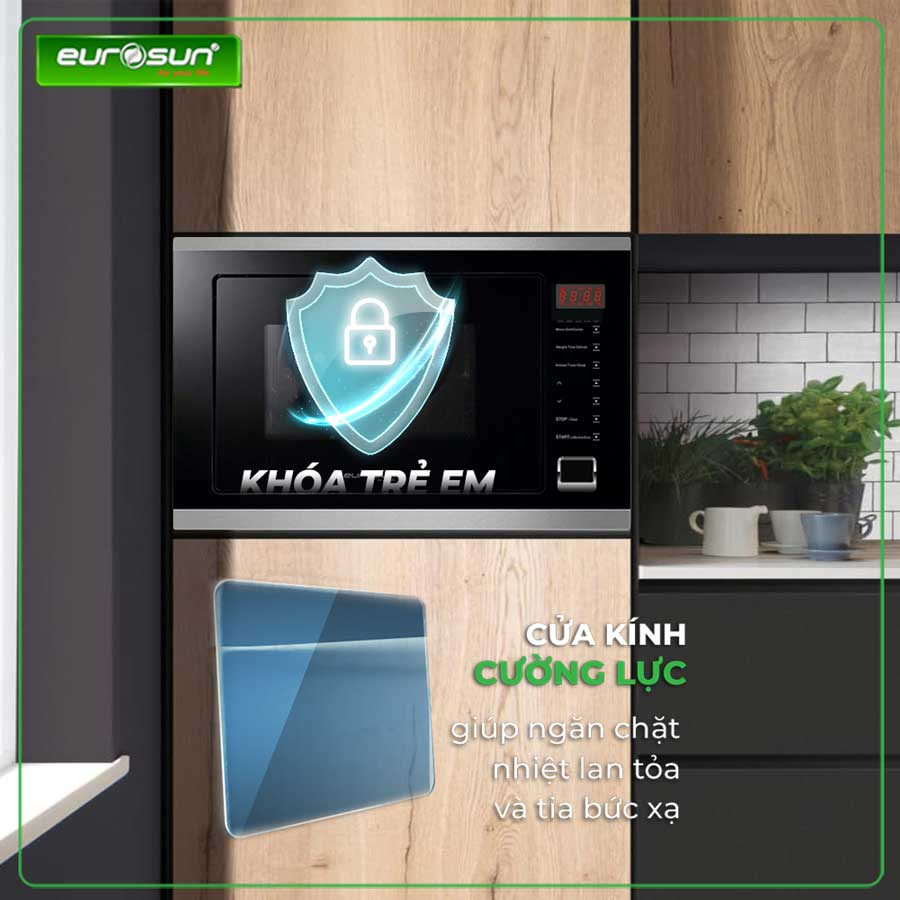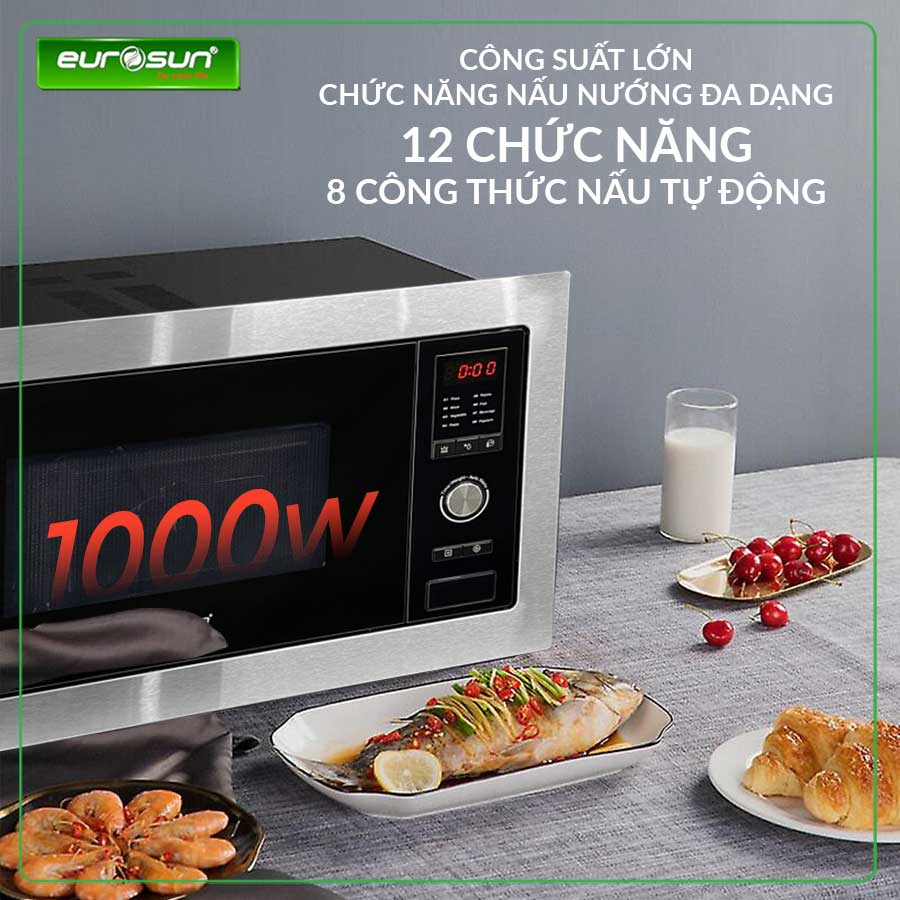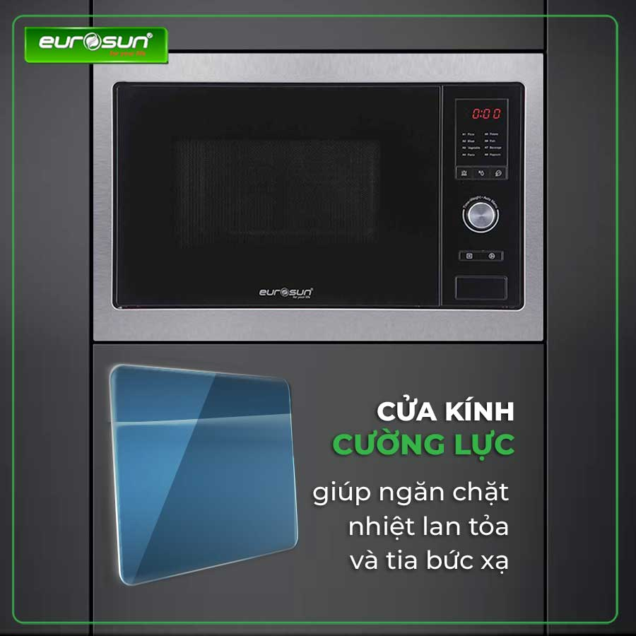 Lò vi sóng Eurosun MWO-28EU nhập khẩu nguyên chiếc từ Malaysia là sản phẩm lò vi sóng cao cấp 2 trong 1 (vi sóng và nướng kết hợp) dung tích 25L phù hợp sử dụng cho đại đa số gia đình Việt. Với thiết kế sang trọng, sử dụng vật liệu cao cấp nhất trong ngành thực phẩm là Inox 304 (18/10) kết hợp kính cường lực đen chống bám bẩn và vân tay, tạo vẻ ngoài sang trọng và cuốn hút.