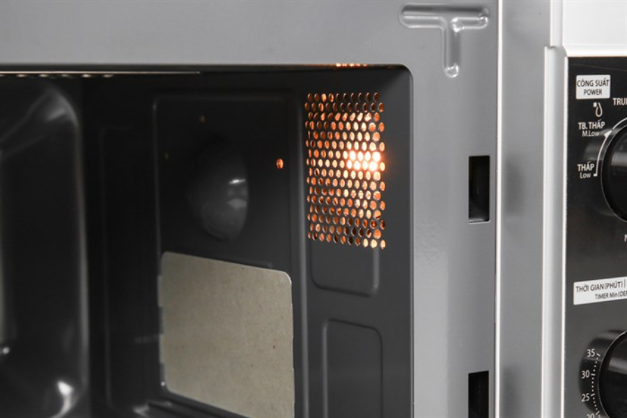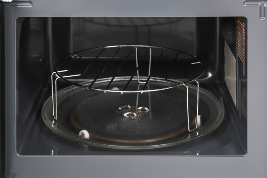 Lò vi sóng có nướng với khoang lò bằng thép không gỉ, dễ lau chùi, nấu nướng thực phẩm an toàn, đảm bảo sức khỏe