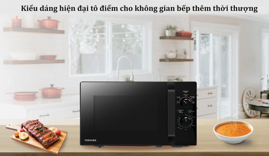 Lò vi sóng Toshiba 20 lít MW2-MM20P(BK) với màu đen trang nhã cùng kiểu dáng thời thượng tạo điểm nhấn cho không gian bếp thêm phần hiện đại. Dung tích 20 lít có thể để vừa gà nguyên con khoảng 1 kg. Tay cầm chắc chắn cùng chân đế cố định giúp lò không bị xê dịch khi bạn mở cửa lò.