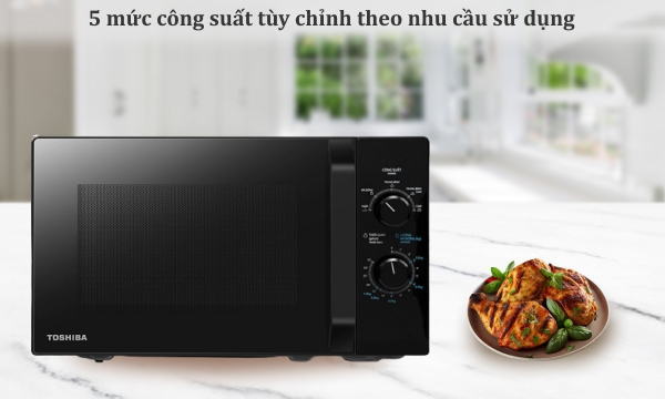 Lò vi sóng Toshiba 20 lít MW2-MM20P(BK) có công suất 700W giúp làm nóng nhanh, tiết kiệm thời gian nấu nướng. Với 5 mức công suất từ thấp đến cao cho bạn tùy chỉnh theo nhu cầu vô cùng tiện lợi.