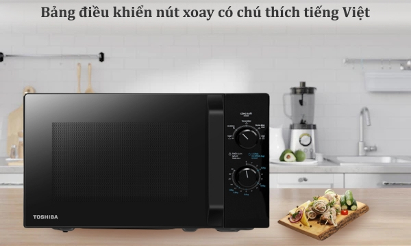 Lò vi sóng Toshiba 20 lít MW2-MM20P(BK) sử dụng bảng điều khiển nút xoay có chú thích tiếng Việt cho bạn dễ dàng sử dụng.