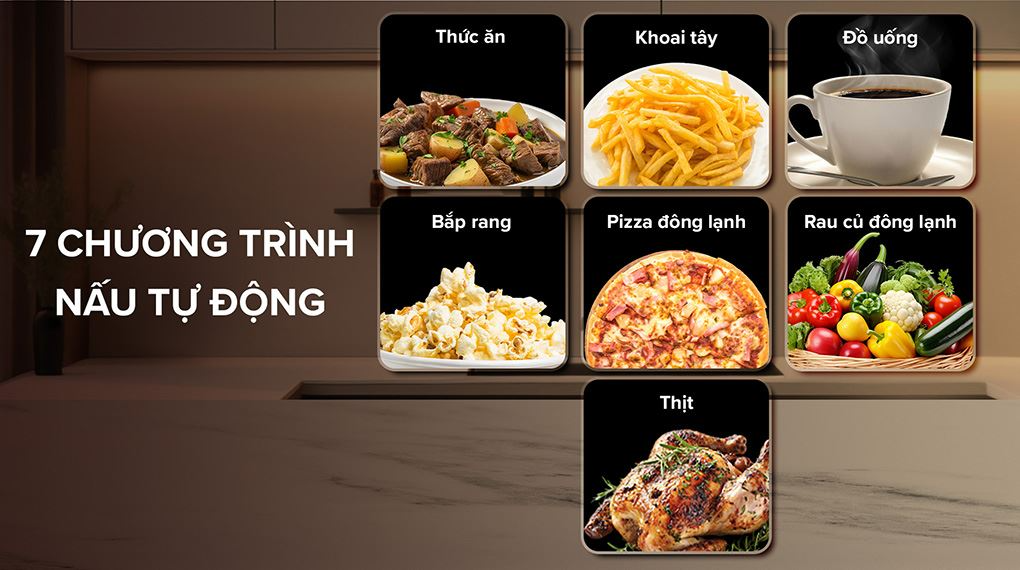 - Ngoài ra lò còn sở hữu thêm 7 chương trình nấu tự động đáp ứng đa dạng nhu cầu chế biến các món ăn.