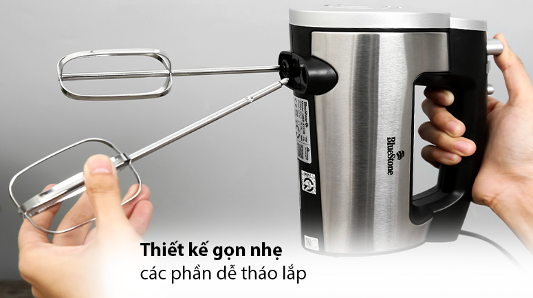 Máy đánh trứng BlueStone sử dụng tiện lợi với 1 cặp que đánh trứng và 1 cặp que trộn bột chất liệu inox 304