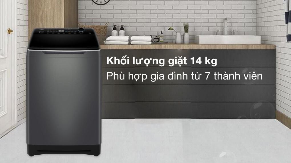 -Máy giặt có khối lượng giặt 14 kg, đáp ứng nhu cầu giặt giũ cho gia đình có từ 7 thành viên.