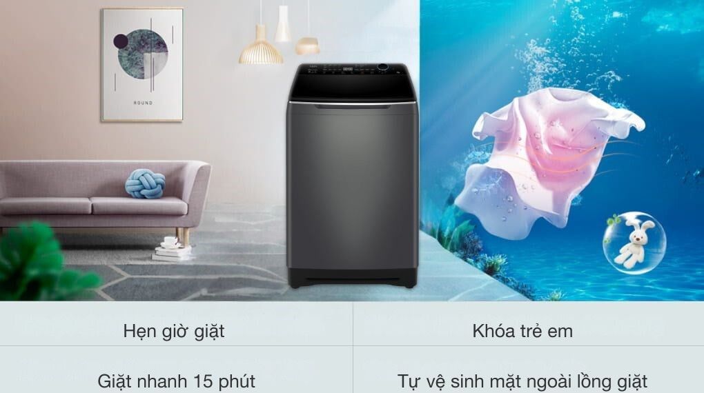 -Hẹn giờ đặt giúp người dùng chủ động kiểm soát được thời gian giặt giũ. Tính năng này có thể hạn chế việc quần áo giặt xong để lâu trong máy giặt dẫn đến mùi hôi khó chịu.