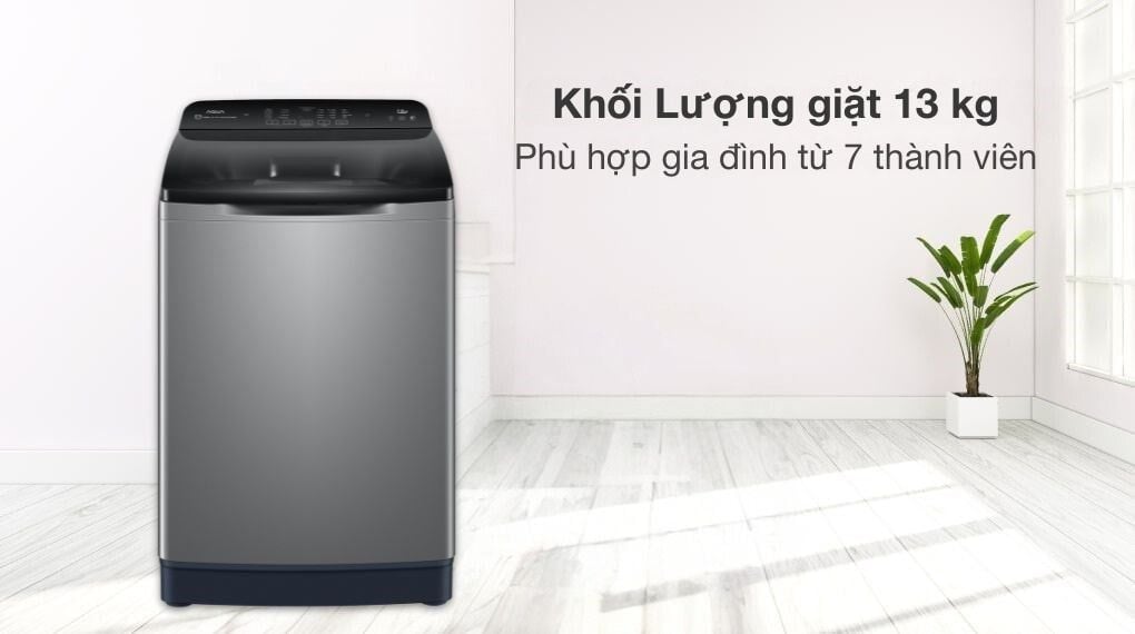 Máy giặt Aqua phù hợp với các gia đình có từ 7 thành viên nhờ khối lượng giặt lên đến 13 kg.