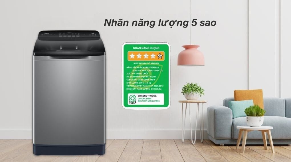 - Sử dụng động cơ BLDC giúp máy hoạt động ổn định. Máy giặt đạt nhãn năng lượng 5 sao với hiệu suất sử dụng điện là 8.02 Wh/kg.
